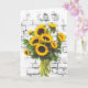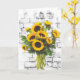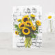 Yellow sunflower bouquet in a glass vase on brick wall pattern for birthday.