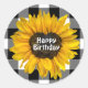 Birthday Sunflower Heart on Buffalo Plaid Classic Round Sticker