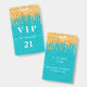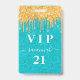 Birthday teal gold glitter drips vip invitation badge