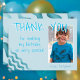 A cute birthday thank you card with a photo and thank you note for your friends and family. Upload your photo and personalize the card with your name. The card has blue waves. Great as thank you card for boys.