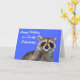 Wish a Happy Birthday to a terrific Orthodontist with a humourous card featuring an adorable raccoon showing off his pearly whites (dentures) with a big beautiful smile. Background is a pretty light blue with white text.