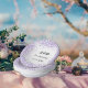 A white background. A white background decorated with violet, lavender confetti. Personalize and add a name and date.