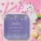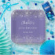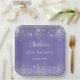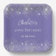 A stylish violet background with elegant faux silver glitter, sparkles. The text: The name is written in white with a modern hand lettered style script. Personalize and add a name, age and a date.