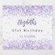 A white background. Decorated with violet, lavender coloured confetti. Personalize and add a name, age and the date.