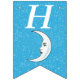This flag shaped bunting Happy Birthday banner is bright aqua blue with a scattering of tiny white stars and a white crescent moon that has a face. Customize the birthday year with the templates.