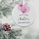Birthday white pink balloons name glass ornament