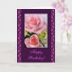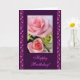 Close of four roses on purple colour background. "Wishing you a beautiful day, and a year filled with love, happiness, and wonderful memories"' Personalize your message! Photography by Maria Santos ( Lusinhas do Sul)