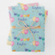 Three sheets of coordinated birthday wrapping paper for your birthday girl. There's blue with balloons and banners and you personalize it with the birthday girls'name. There's yellow and white polka dots with balloon bouquets and you personalize with her age, and there's pink with white polka dots, rainbows and butterflies. Mix and match and stack the presents for a beautiful birthday surprise!