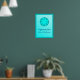 Poster in a digital illustration of an aquamarine, the birthstone for March, shades of aqua to deep teal blue, bordered in an aquamarine crystal pattern