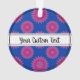 Christmas ornament with a seamless modern geometric flower pattern in the colours of the bisexuality pride flag - a pink, purple, and blue bi pride design on a blue background; with an editable text field for your name or message; a great way to decorate your Christmas tree :D