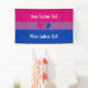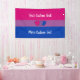 Banner sign with the bisexuality pride flag with little hearts in the centre of the design. Pink, purple, and blue flag of the bi pride movement; with an editable text field for your name or message