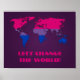 Value Poster with bisexuality rainbow stripes map of world, bisexuality pride design on purple background, Let's Change the World template text, by pinkbrickroad