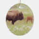 A bison and her calf stand in a grassy meadow of Yellowstone National Park in this digital painting, based on an original photograph by artist/photographer Jayne Wilson.