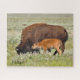 Jigsaw Puzzle mettant en vedette un bison mama et son petit pâturage dans la prairie. Photo du Parc National du Grand Tétons par le designer ©sjasis