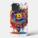 visually dynamic and vibrant vector graphic that depicts a stylized Bitcoin coin exploding into a burst of rainbow-hued digital particles