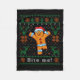 Bite Me Gingerbread Man - Funny Ugly Christmas Swe Fleece Blanket