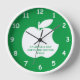 Bitten apple silhouette custom round wall clock . Personalize with your own text or funny quote. An apple a day keeps the doctor away. Green or custom colour background. Trendy home decor for kitchen, school, class room, bedroom, office, waiting room, dentist, cafe, bar etc.