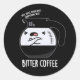 Bitter Coffee Funny Food Pun Dark BG Classic Round Sticker