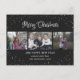 Custom black photo Christmas postcards featuring a photo collage and a beautiful hand-lettered script title with stars and greenery. Easily personalize this black Merry Christmas postcard with your images, text, year and a family name. You can also change the background and font to any colour.
