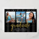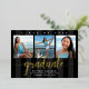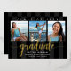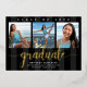 Announce to the world that your favourite grad has reached their milestone with this stunning, simple, modern, personalized announcement. Sparkly, elegant, real foil calligraphy script and white sans serif typography overlay a black and dark grey striped background. Add three photos of your choice and personalize the custom text with your graduate’s name, school name, class year, and graduation date. On the back, add your personal note, next school they’re attending, party information, etc. Matching and coordinating thank you cards, cap toppers, fans, napkins, plates, banners and other graduation goodies are also available in this trendy and stylish collection. Guaranteed to add stylish fun to their special occasion!