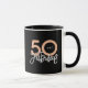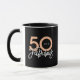 Check out this sleek and stylish 50th birthday mug in a stunning peach and white on black background!