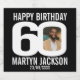 60th birthday white on black photo party paper beer or wine labels. Great to add a personal touch to a surprise sixtieth birthday party. Customize with your birthday boys or girls photo in the 0 of 60 and personalize with your choice of name and birthday celebration date. Designed by Sarah Trett for www.mylittleeden.com