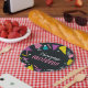 Fun, colourful birthday plate for the cool, radical, bodacious, tubular, and awesome birthday person. A cool, retro 80s pattern in black. Words are personalizable for easy customization.
