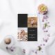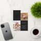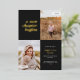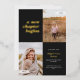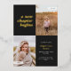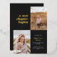 This modern graduation announcement features the words "a new chapter begins" in foil on the top left of the card on a black background. It has spaces for two vertical photos to celebrate your graduate's journey so far, a photo from the past and a photo from the present. The front of the card has space for the graduate's name, class year, school, and future plans. The back of the card has space for additional text and can be used as a graduation party invitation or to write a personal message.