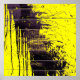 Black abstract splatter paint drips on a bright yellow background