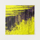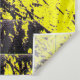 Black abstract splatter paint drips on a bright ye tapestry