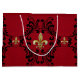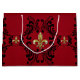 Large glossy gift bag with an image, on the front and back, of black acanthus leaves on red velvet and gold fleurs de lis. See the entire Cancan Gift Bag collection in the PARTY FAVORS section.