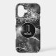 Your monogram and your name are in gleaming silver on a black circle banner at the centre of this phone case. The banner is framed in thin silver and placed on a sparkling faux diamond and agate black background with star lights scattered about. Elegant!