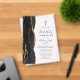 The left-hand edge of this elegant modern first communion invitation features a black watercolor agate border trimmed with gold faux glitter. A gold faux foil cross appears above the customizable text, which combines handwriting, copperplate and italic fonts in charcoal grey on a clear background. Ideal for a boy's First Communion.