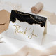 This elegant design features a black agate top border trimmed with gold faux glitter. The words "Thank You" appear in gold faux foil/glitter handwriting script on the front. Inside, replace the text with your wording of choice, or delete to leave blank.