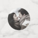 This elegant wedding table confetti design features the names of the bride and groom in rose pink handwriting script over a large grey ampersand on an off-black background, bordered by a black watercolor agate geode design trimmed with rose gold faux glitter. Easily replace the sample image on the reverse side with your favourite photo.