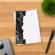 The left-hand edge of this elegant modern first communion invitation features a black watercolor agate border trimmed with faux silver glitter. A faux silver foil cross appears above the customizable text, which combines pale silver grey handwriting script, copperplate and italic fonts on your choice of a clear or frosted background.