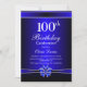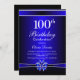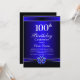 Start planning your 100th birthday party with this elegant black and blue 100th birthday party invitation.