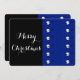 Christmas card with Santa Claus in his sleigh silhouettes on a blue background and the text: 'Merry Christmas' on a black background with customizable name.