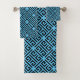 Black and blue lines in the style of a Greek Key repeatig Pattern.