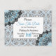 Blue Black and White Mandala Wedding Save the Date postcards.