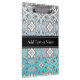 Black, aqua blue and White Mandala Zen Personalized clipboard