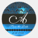 BLACK AND BLUE SAPPHIRE DAMASK MONOGRAM, CLASSIC ROUND STICKER