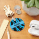 A modern design featuring a black and blue zebra stripe background. A band of blue accents name. Customize as desired.