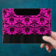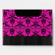 Chic pretty feminine bright fuchsia magenta pink and black retro damask, elegant formal traditional vintage style customizable wedding envelope, easily personalize the bride and grooms names or monograms to the templates to create a unique custom envelope for your special marriage occasions and celebrations. Visit the PERSONALIZED_ WEDDINGS STORE for matching coordinated wedding suite sets.