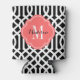 Cute trendy monogrammed can or bottle cooler with a preppy trellis pattern. Personalize it with a custom monogram or other text in a chic quatrefoil frame. Click Customize It to change text and fonts to create a unique one of a kind gift for your bridesmaids and wedding party! Contact me before ordering to customize patterns or design to coordinate with any wedding colours.