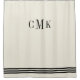 Add a bit of relaxed elegance to your bath with this stylish shower curtain. Classic black stripes and a three letter monogram add just the right touch to this ecru background.
