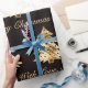 Black and Faux Gold Foil Christmas Tree Pattern Elegant Gift Wrapping Paper, with custom text