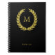 Black and Faux Gold Laurel Wreath with Initial Notebook