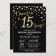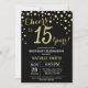 15th Birthday Invitation with Black and Gold Glitter Diamond Background. Gold Confetti. Kids Birthday. Boy or Girl Birthday. For further customization, please click the "Customize it" button and use our design tool to modify this template.