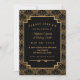 Black and Gold Art Deco Fan Flowers Wedding Invitation